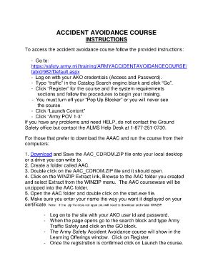 Online PDF Army Accident Avoidance Course Blank Certificate Audio CD